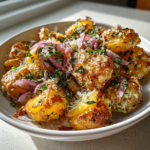 Crispy smashed potato salad is a modern take on the classic potato salad, featuring small potatoes that are boiled until tender, smashed, and then roasted to achieve a crispy texture. This dish is tossed with a creamy dressing made from mayonnaise, Dijon mustard, and apple cider vinegar, along with fresh herbs like chives and parsley. The result is a side dish that combines the best of both worlds: crunchy and creamy, with a burst of flavor in every bite.