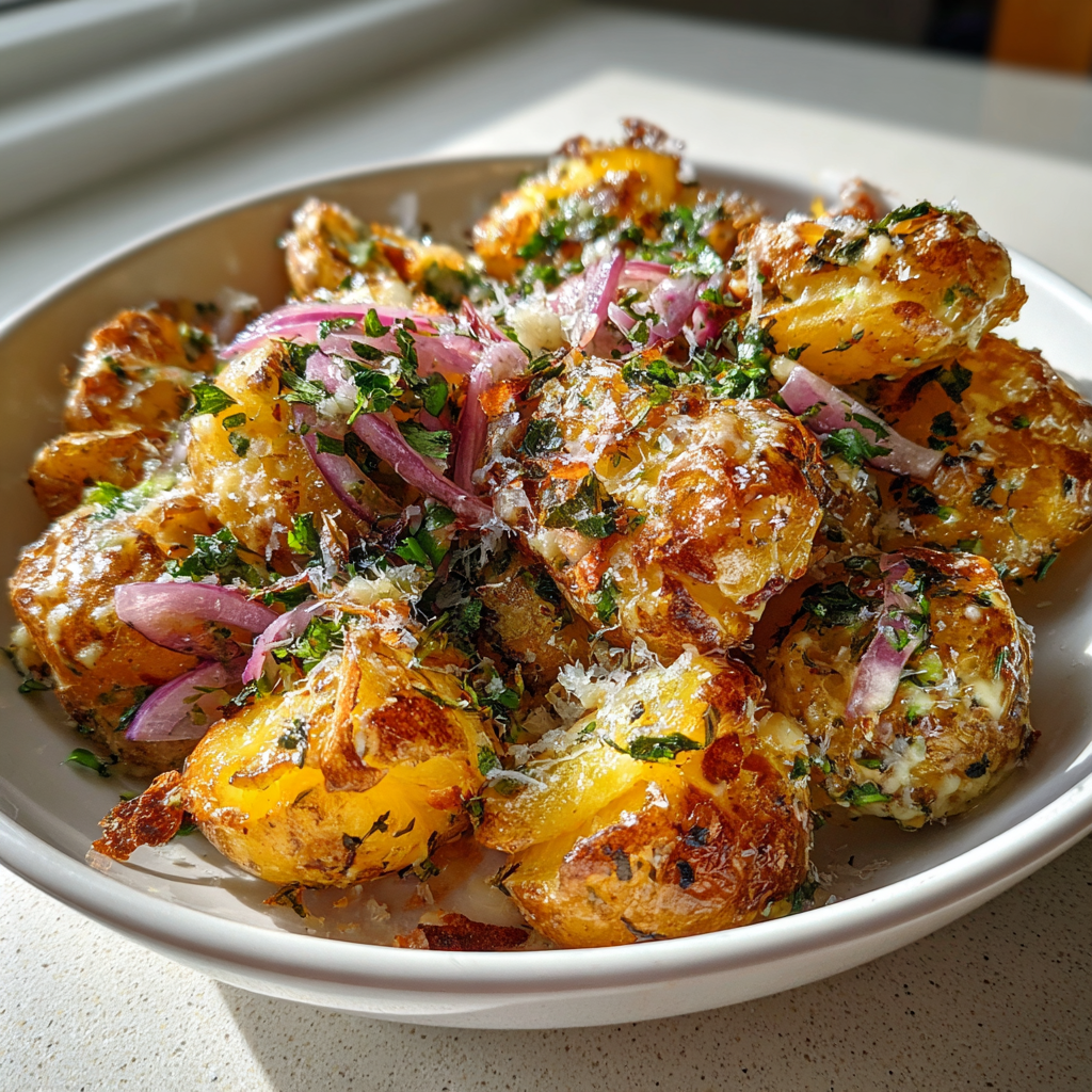 Keywords: Crispy Smashed Potato Salad, Potato Salad Recipe, Crispy Potato Side Dish, Easy Potato Salad, Oven Roasted Potatoes, Potato Salad with Bacon, Herbed Potato Salad