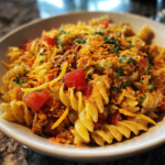The Dorito Taco Pasta Salad is a delightful and simple dish that combines cooked rotini pasta with fresh vegetables, creamy dressing, and the crunch of Doritos. This salad is perfect for casual gatherings and is loved for its unique combination of flavors. It’s a fun twist on traditional pasta salads, making it a crowd-pleaser at any event.