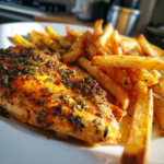 This dish features tender, juicy chicken breasts seasoned with a blend of spices, served alongside crispy fries. The combination of flavors creates a satisfying meal that can be enjoyed year-round. It’s a delightful twist on classic comfort food, perfect for those who appreciate flavorful yet uncomplicated dinners.